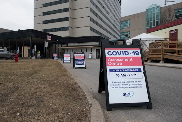 The COVID-19 assessment centre located at Scarborough Health Network - Centenary Hospital, is photographed on Mar 26 2020. In all, 200 Ontarians ill with the disease were hospitalized in intensive care as of Saturday, a nearly fivefold increase over the past nine days.Fred Lum/The Globe and Mail
