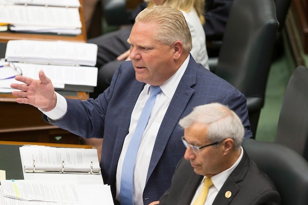 Ontario Premier Doug Ford exchanges words with former NDP leader Andrea Horwath during Question Period at Queen's Park in Toronto on July 31, 2018.Chris Young/The Canadian Press