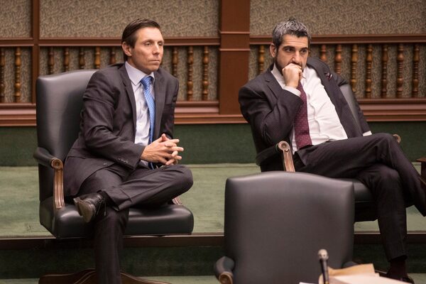 Former Ontario PC leader Patrick Brown (left) sits next to Ontario PC MPP Ross Romano at the Queen's Park Legislature in Toronto on March 28, 2018.Chris Young/The Canadian Press
