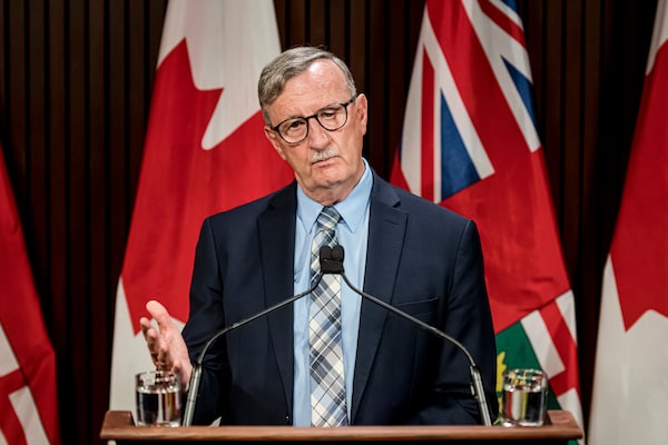 Dr. David Williams, Chief Medical Officer of Health for Ontario makes an announcement at Queen's Park in Toronto, on Aug. 13, 2020.Christopher Katsarov/The Canadian Press