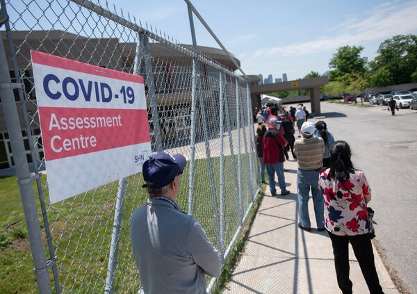 People line up at a mobile COVID-19 assessment centre, in Toronto, on June 2, 2020.Fred Lum/the Globe and Mail