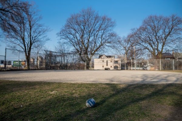A deflated ball at the empty yard at Regal Road Public School in Toronto on April 7, 2021.Tijana Martin/The Canadian Press