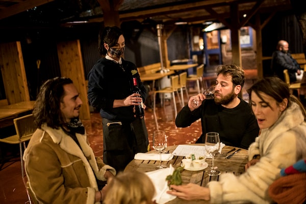Customers at Allen's pub in Toronto are served by a masked waiter on Nov. 22, 2020.Christopher Katsarov/The Globe and Mail