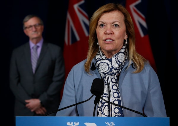 Ontario Chief Medical Officer of Health Dr. David Williams looks on as Ontario Health Minister Christine Elliott speaks about a new phone app being introduced - a COVID Alert application - during the daily briefing at Queen's Park in Toronto on Thursday, June 18, 2020. THE CANADIAN PRESS/Jack Boland-POOLJack Boland/The Canadian Press