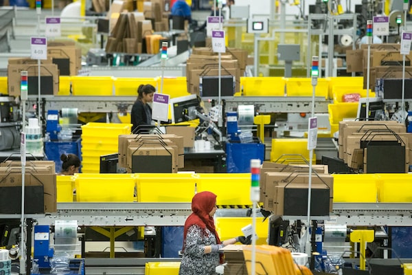 Employees work at the Amazon fulfillment center in Brampton, Ont., on Nov. 26, 2018.Chris Young/The Canadian Press