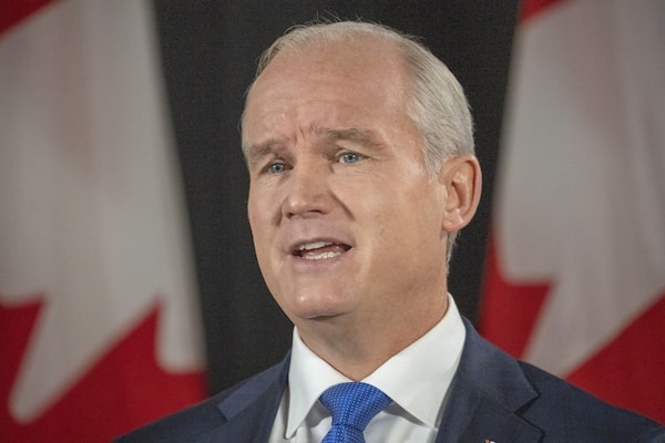 Conservative Leader Erin O'Toole speaks to the media at a campaign event in Coquitlam, B.C., Saturday, Sept. 4, 2021. Canadians will vote in a federal election Sept. 20th.Frank Gunn/The Canadian Press