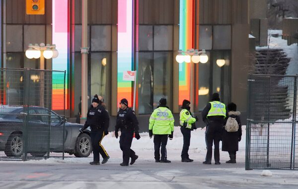 Police members stand at a checkpoint in Ottawa on Feb. 23.PATRICK DOYLE/Reuters