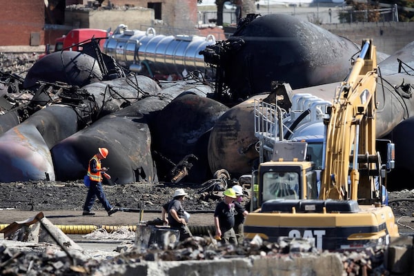 First responders work on the site of a train wreck in Lac-Mégantic, Que., on July 12, 2013.Mathieu Belanger/Reuters