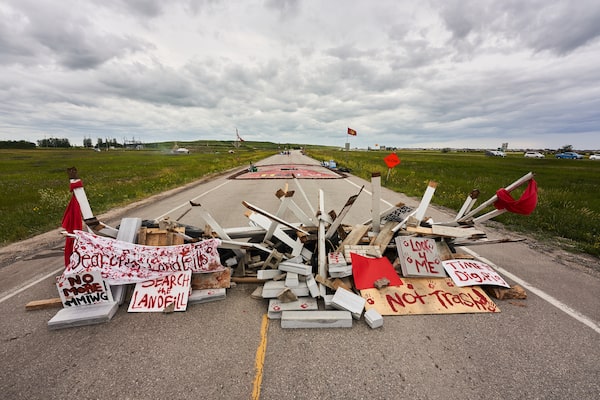 Indigenous rights activists set up a blockade on the main road into the Brady Road landfill just outside of Winnipeg, Man., seen on July 12.David Lipnowski/The Globe and Mail