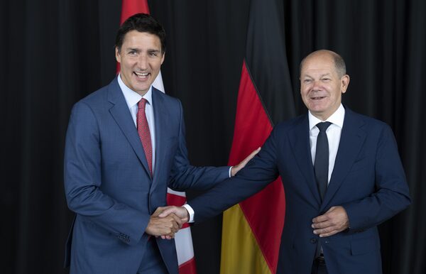 Prime Minister Justin Trudeau and German Chancellor Olaf Scholz observed the signing ceremony in Toronto at an event hosted by the Canadian-German Chamber of Industry and Commerce.