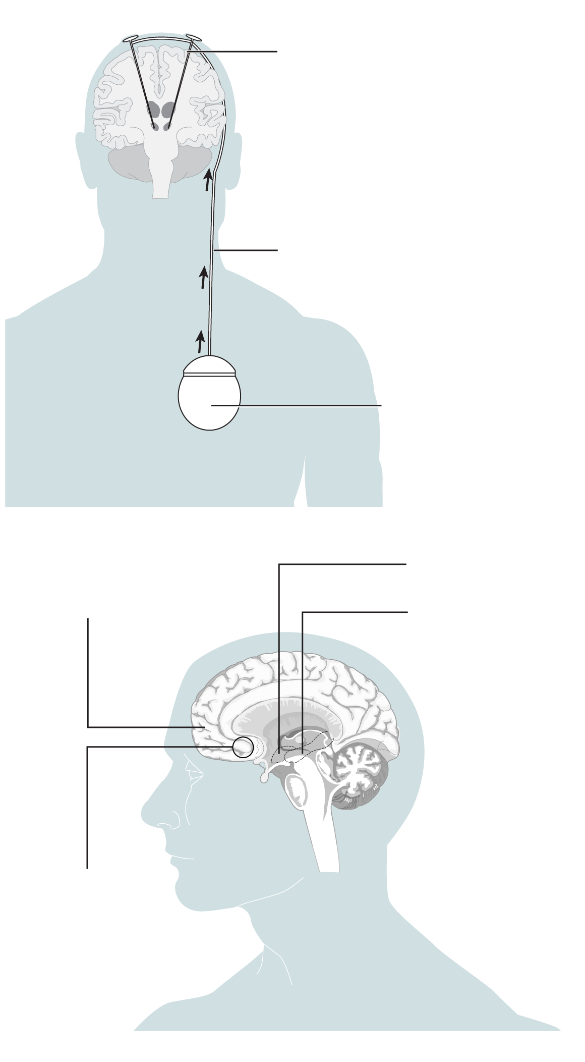 are inserted about 6 cm into the brain