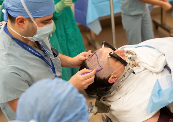 Dr. Nir Lipsman makes a guide on her skull.