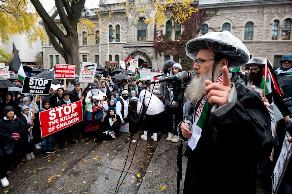 Rabbi Dovid Feldman speaks at a Pro-Palestine protest in in Ottawa, Sunday, Oct. 22, 2023.Spencer Colby/The Canadian Press