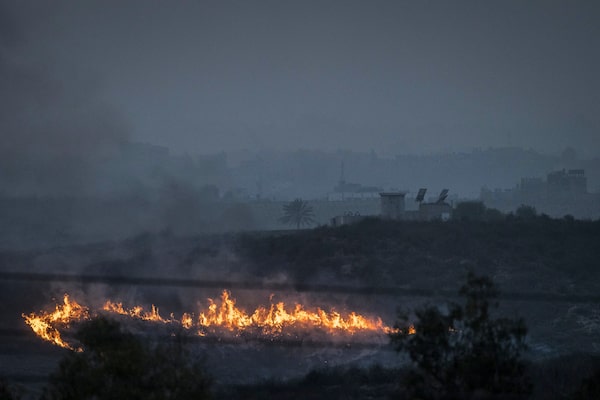 Grass burning along the border with Gaza near Sderot, Israel on Saturday, Oct. 28, 2023.SERGEY PONOMAREV/The New York Times News Service