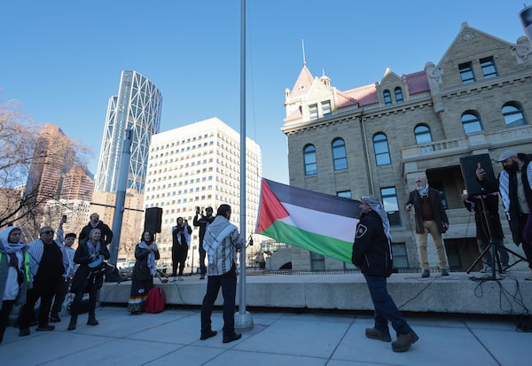 In Calgary, Haneen Omar was among about 250 people who gathered to watch that city’s flag-raising on Saturday. She said seeing the flag fly brought feelings of validation, pride, joy and also sadness, recognizing Palestine’s tumultuous path toward statehood.
