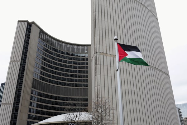 In Toronto, dozens gathered at City Hall Monday to fly the flag on the building’s rooftop, chanting slogans and cheering, while a few pro-Israeli advocates protested nearby. Mayor Olivia Chow did not attend, as is her general policy for flag raisings.