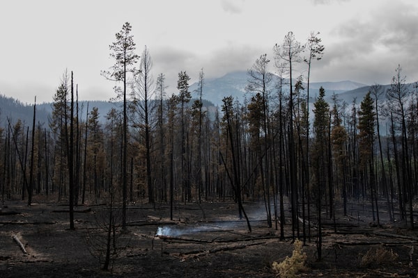 A spot smoulders in the forest outside Jasper, Alta., on July 26.Amber Bracken/Reuters