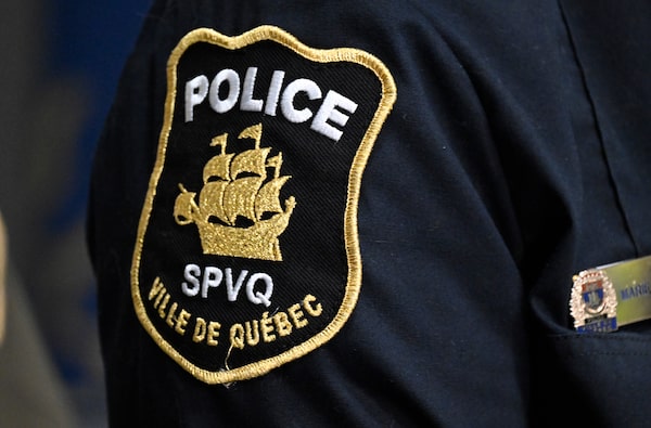 The Quebec City police forces patch at a news conference, in Quebec City, on Feb. 29.Jacques Boissinot/The Canadian Press