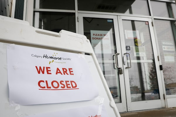The Calgary Humane Society has closed its doors amid a worldwide COVID-19 pandemic.Jeff McIntosh/The Canadian Press