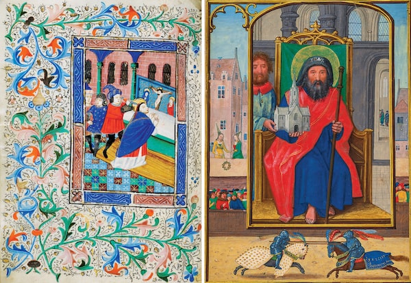 Left: The Murder of St. Thomas Becket (c. 1460-1470), from the Master of Morgan 78. Right: Saint Sebald of Nuremberg (c. 1515-1525), from Simon Bening.Gregory Houston and Christine Guest/MMFA