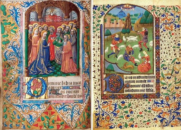 Left: Pentecost (1475-1480), from the workshop of Maître François (François Le Barbier). Right: The Annunciation to the Shepherds (c. 1470-1475), from the Master of the Échevinage of Rouen.Jean-Franois Brire and Gilles Saint-Pierre/MMFA