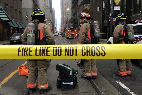 Firefighters stand by their equipment after a bomb threat evacuated King subway station in downtown Toronto, on Dec. 13, 2018.Graeme Roy/The Canadian Press