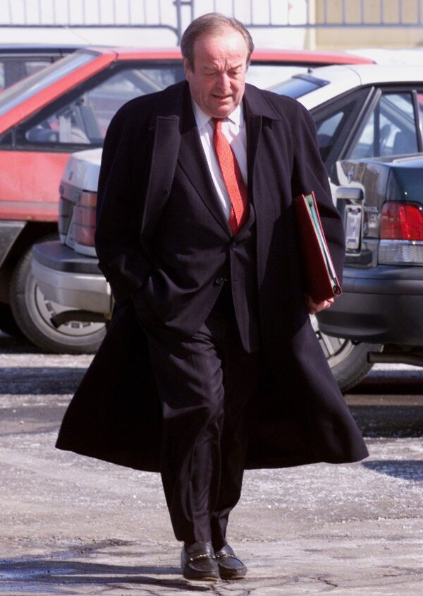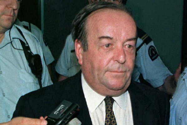 Conservative Senator Michael Cogger brushes past reporters as he leaves court in Montreal on June 2, 1998 after being found guilty of influence peddling. Cogger died on Jan. 27, at the age of 85 after a variety of age-related illnesses.Ryan Remiorz/The Canadian Press