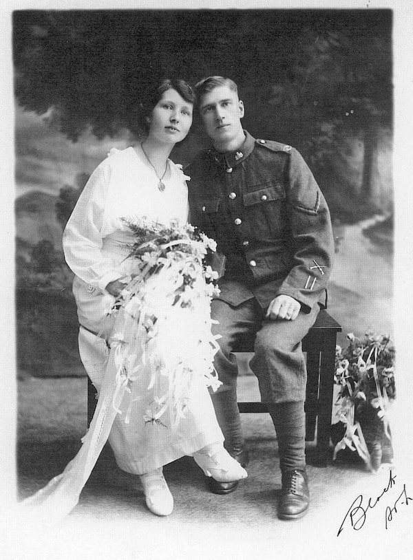 After emigrating to Canada from England as a teenager in 1906, Percy Argyle tried his hand at farming in Manitoba and Saskatchewan before making his way eastward, working in lumber camps and sawmills. Out of a job at the end of 1915, the 25-year-old was in Rainy River, Ont., when he met a fellow English immigrant, Kate Connor. He fell for her – only to enlist, weeks later. “Although Dad would have denied it, the Union Jack must have still meant something to him,” says his youngest son, Ray.
