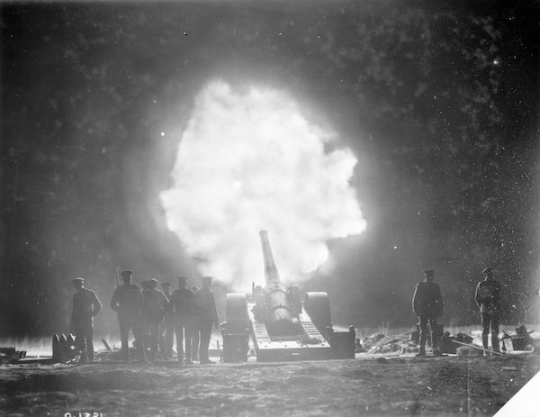 A heavy artillery piece firing during the Battle of Vimy Ridge, April 1917.George Metcalf Archival Collection / Canadian War Museum