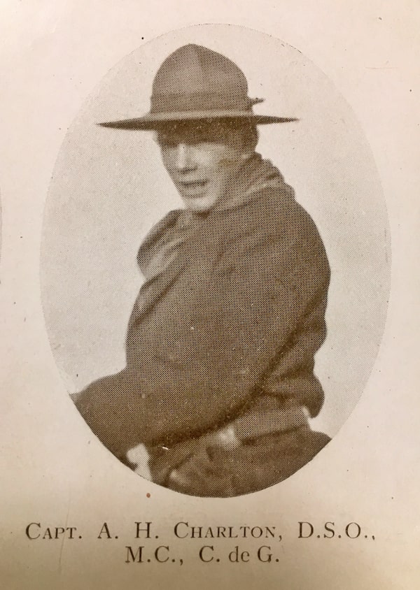 The son of an Anglican rector from the West Midlands village of Tatenhill, Humphrey Charlton studied agriculture before emigrating to Canada in 1910 in order to homestead in Alberta. When the war broke out, he sailed back to England to enlist as a private in the Army Veterinary Corps.