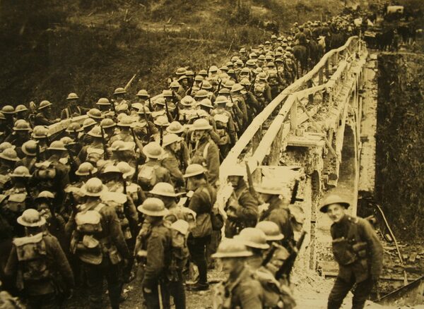 North Staffordshire troops crossing the Riqueval bridge after its capture.Richard Pursehouse