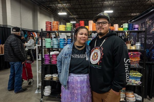 At a booth nearby, Jill Ruep was talking to people about a beadwork pattern app she’s developing through Saskatchewan’s Southeast College. Ms. Ruep said the current situation with the United States has already affected the trips her family regularly made over the border to North Dakota for hockey and to visit with friends. She said she’s already seen significant cost increases trying to buy beads and ribbon skirts from Native American suppliers, which can easily chew up the small profits to be made from her handiwork.