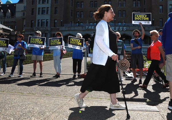 A small group of health care supporters gather as premiers meet on the second day of the summer meeting of the Canada's Premiers at the Fairmont Empress in Victoria, B.C., on Tuesday, July 12, 2022 THE CANADIAN PRESS/Chad HipolitoCHAD HIPOLITO/The Canadian Press
