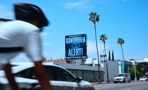 A billoard from the AIDS Healthcare Foundation warning of a drug-resistant gonorrhea is seen on Sunset Boulevard in Hollywood, Calif., in May, 2018.FREDERIC J. BROWN/Getty Images