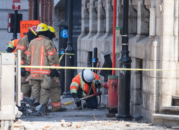 Firefighters continue the search for victims March 20 at the scene of last week’s fire that left one person dead and six people missing in Montreal.Ryan Remiorz/The Canadian Press