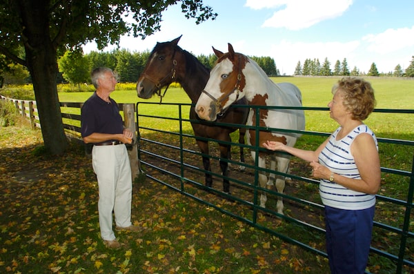 Former Globe and Mail publisher Roy Megarry and his wife Barbara check on their horses near their Uxbridge, Ont.-area home, on Sept. 15, 2005.Fred Lum/The Globe and Mail
