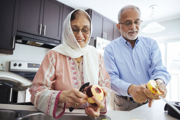Since Rubina Qureshi’s Alzheimer’s diagnosis, her husband Pasha Qureshi has become her caregiver. They are seen making lunch in their Milton home on Jan. 11.Jennifer Roberts/The Globe and Mail