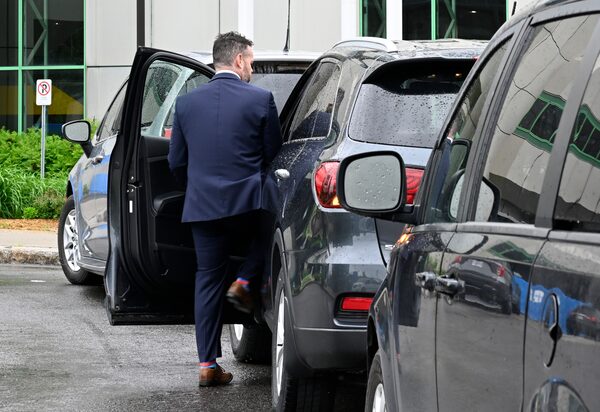 A police officer steps in his unmarked car a the headquarters of the SAAQ in Quebec City on Wednesday.Jacques Boissinot/The Canadian Press