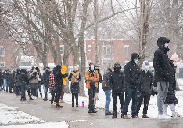 People wait in line to receive a COVID-19 test in Montreal on Dec. 22. With the arrival of the Omicron variant, the province again has the highest infection rate in the country.Graham Hughes/The Canadian Press