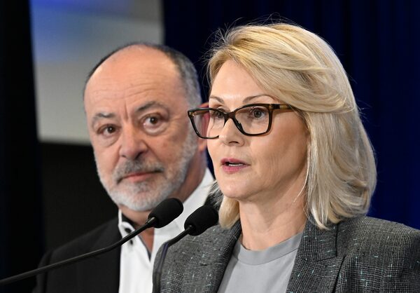 Genevieve Biron, head of Sante Quebec speaks as Quebec Health Minister Christian Dube looks on April 29 in Quebec City.Jacques Boissinot/The Canadian Press