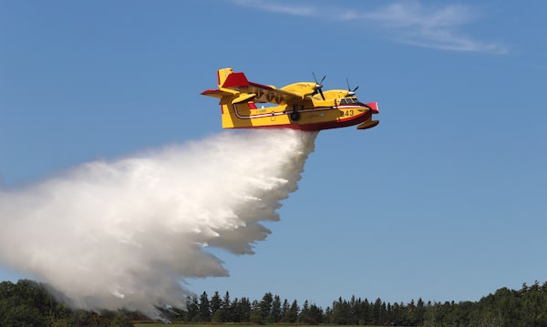 A CL415 water bomber performs at the Aero Gatineau Ottawa airshow in Gatineau, Que., on Sept. 16, 2023.PATRICK DOYLE/The Canadian Press