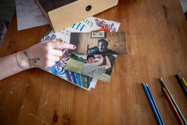 Ms. Demontigny shows two pictures of her father, one before his Alzheimer’s diagnosis and another later in his life as his condition declined.Andrej Ivanov/The Globe and Mail