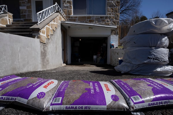 Sandbags outside a home in preparation for flooding in Pierrefonds, a borough of Montreal, on Friday.Christinne Muschi/The Canadian Press