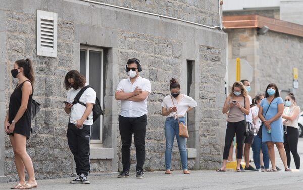 People wait in line at a COVID-19 testing clinic in Montreal, on July 12, 2020.Graham Hughes/The Canadian Press