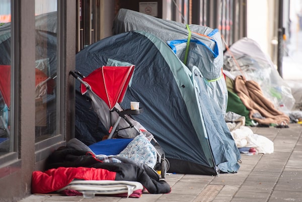 Homeless tents outside a department store in Montreal, on Jan. 23, 2021.Graham Hughes/The Canadian Press