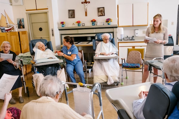 Upstairs in the infirmary, the nuns who survived Quebec’s rapid shift to secularism seem like historical artifacts themselves. The hallways are filled with women whose hair comes in shades of grey, silver and white, moving like wispy shadows on walkers and in wheelchairs. After years of caring for others, they need someone to care for them. Their average age is 87.