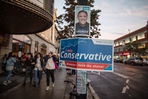 On Montreal's Park Avenue, campaign posters advertise François Legault's Coalition Avenir Québec the smaller Quebec Conservative Party. Quebeckers go to the polls on Monday.Dario Ayala/The Globe and Mail