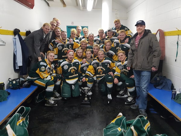 Members of the Humboldt Broncos junior hockey team are shown in a photo posted to the team Twitter feed, @HumboldtBroncos on March 24, 2018 after a playoff win over the Melfort Mustangs.The Canadian Press