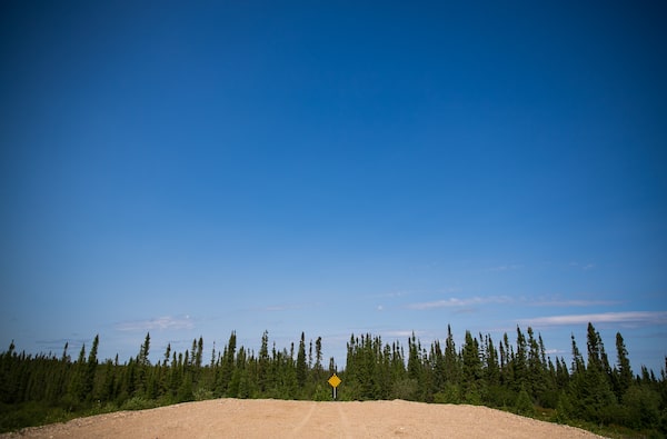 A sign on Manitoba Provincial Road 290 is the farthest north you can travel by car in the province. It is about 26 kilometres north of where the suspects' car was found.