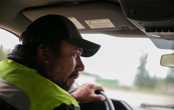 Billy Beardy of Fox Lake First Nation goes out daily in his construction vehicle to patrol areas near where he and his wife, Tamara, found the fugitives' car.